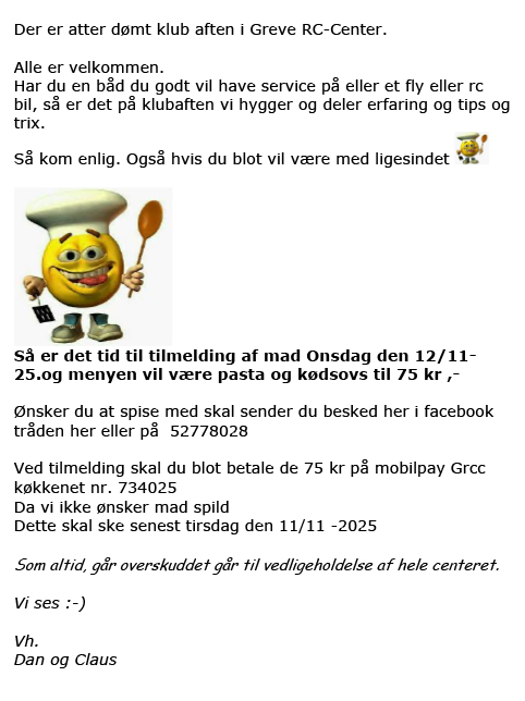 Jeg har været medlem i siden klubben startede og har haft stor fornøjelse og glæde af mit medlemskab og kan anbefale alle med en RC model at melde sig ind i klubben
