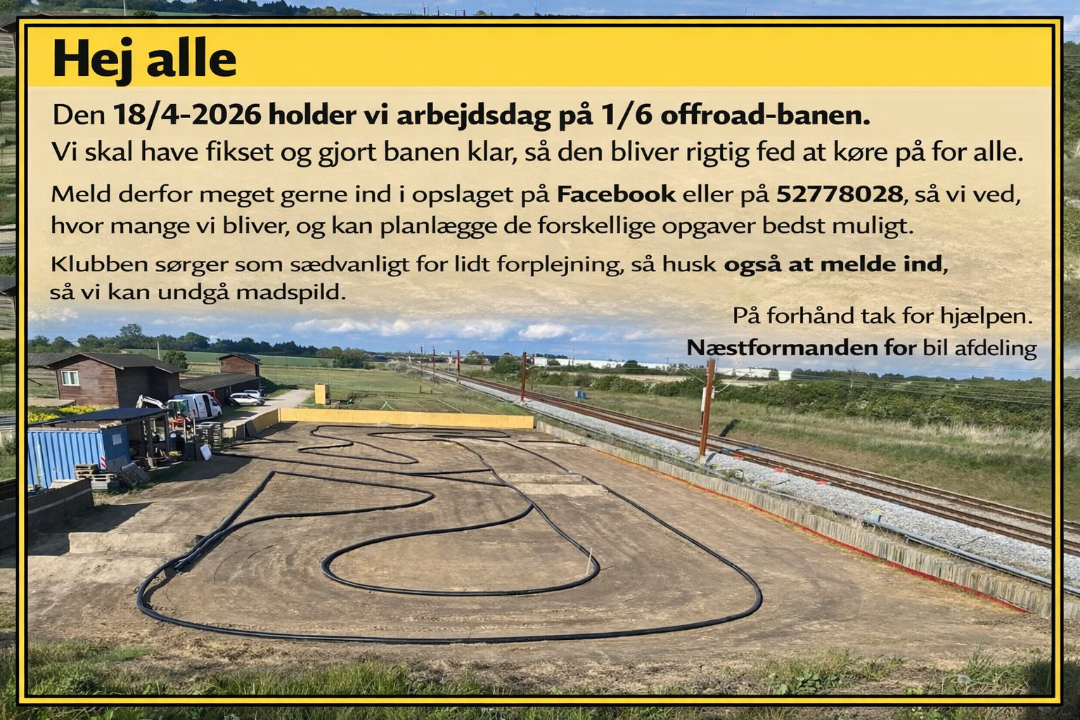 Den 18/4-2026 holder vi arbejdsdag på 1/6 offroad-banen.